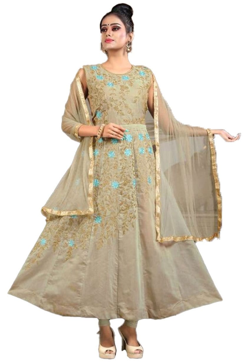 Party Wear Net Gown for Women / Girls Full Embroidery Work - Cream Colour