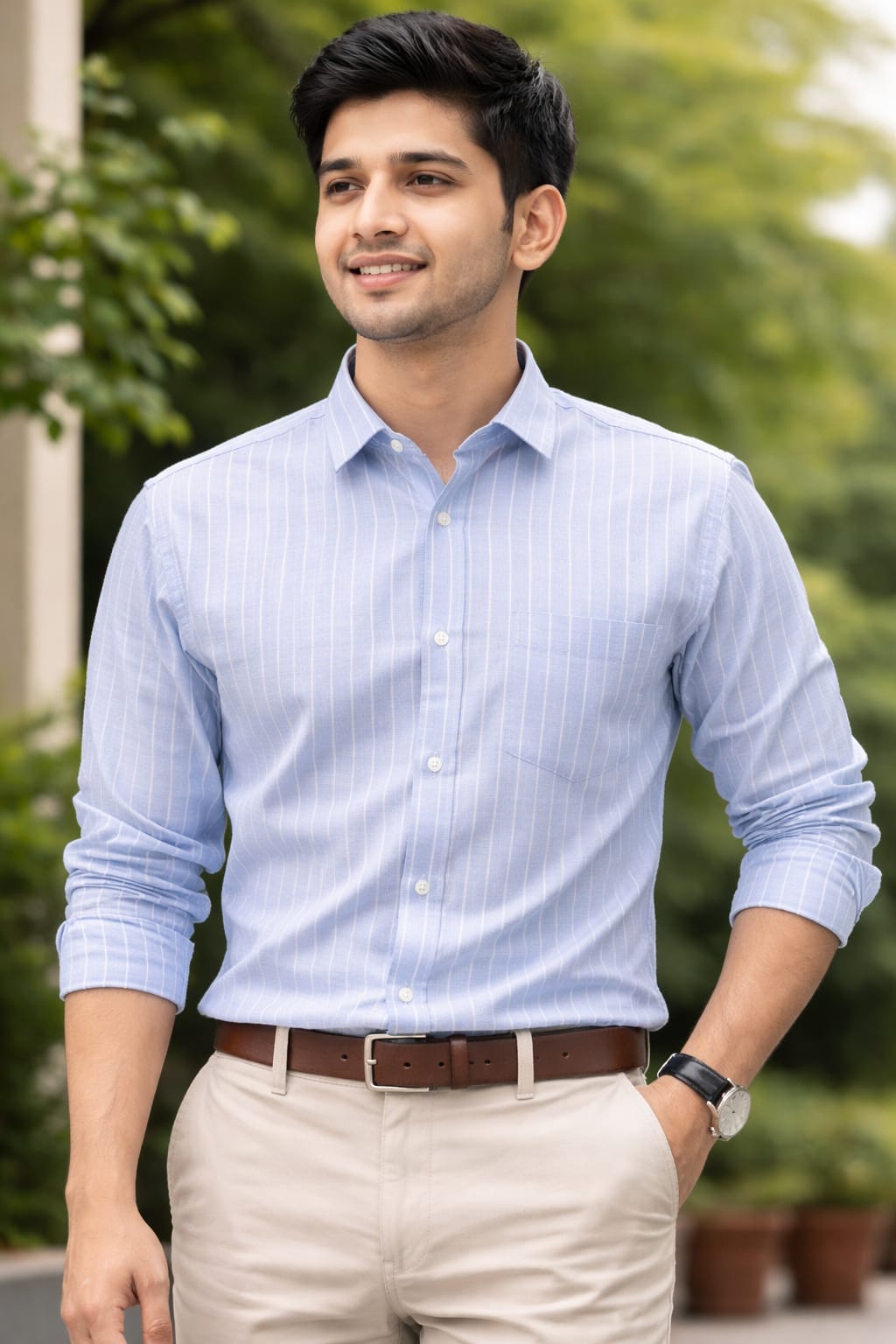 F.London Men's Sky Blue Premium Stripe Shirt