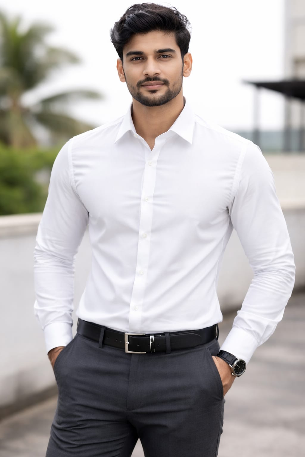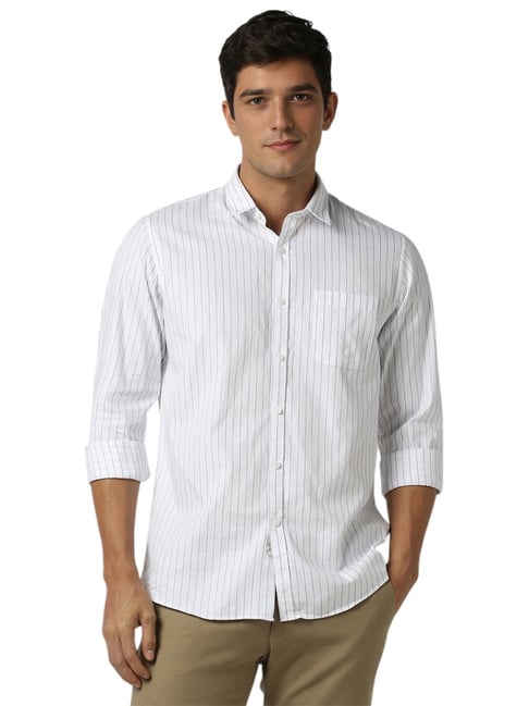 F.London Men's White Premium Stripe Shirt