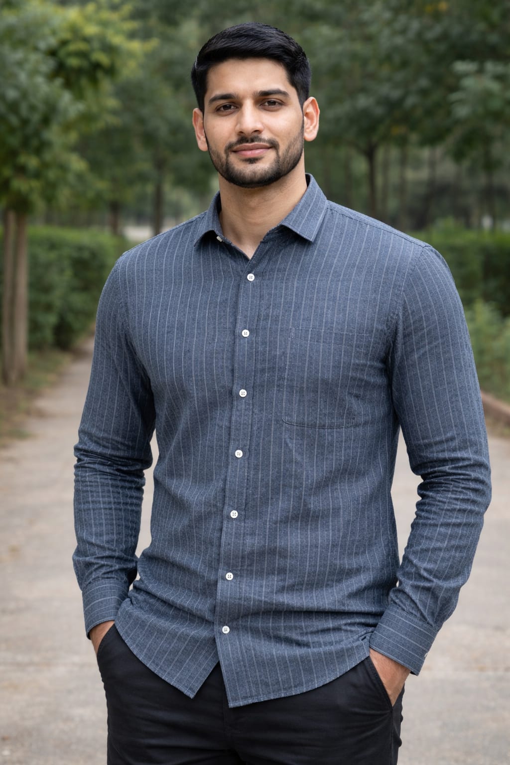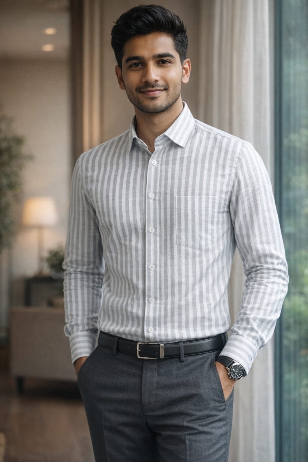 F-London Men's Premium Grey Stripe Shirt