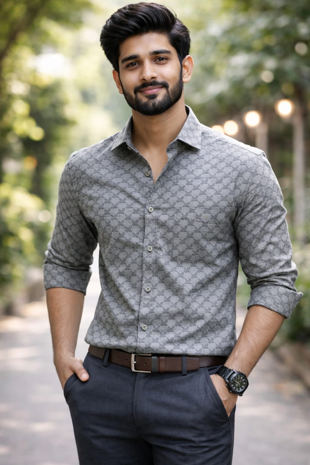 Men’s Checked Cotton Shirt (Black/Grey-L)
