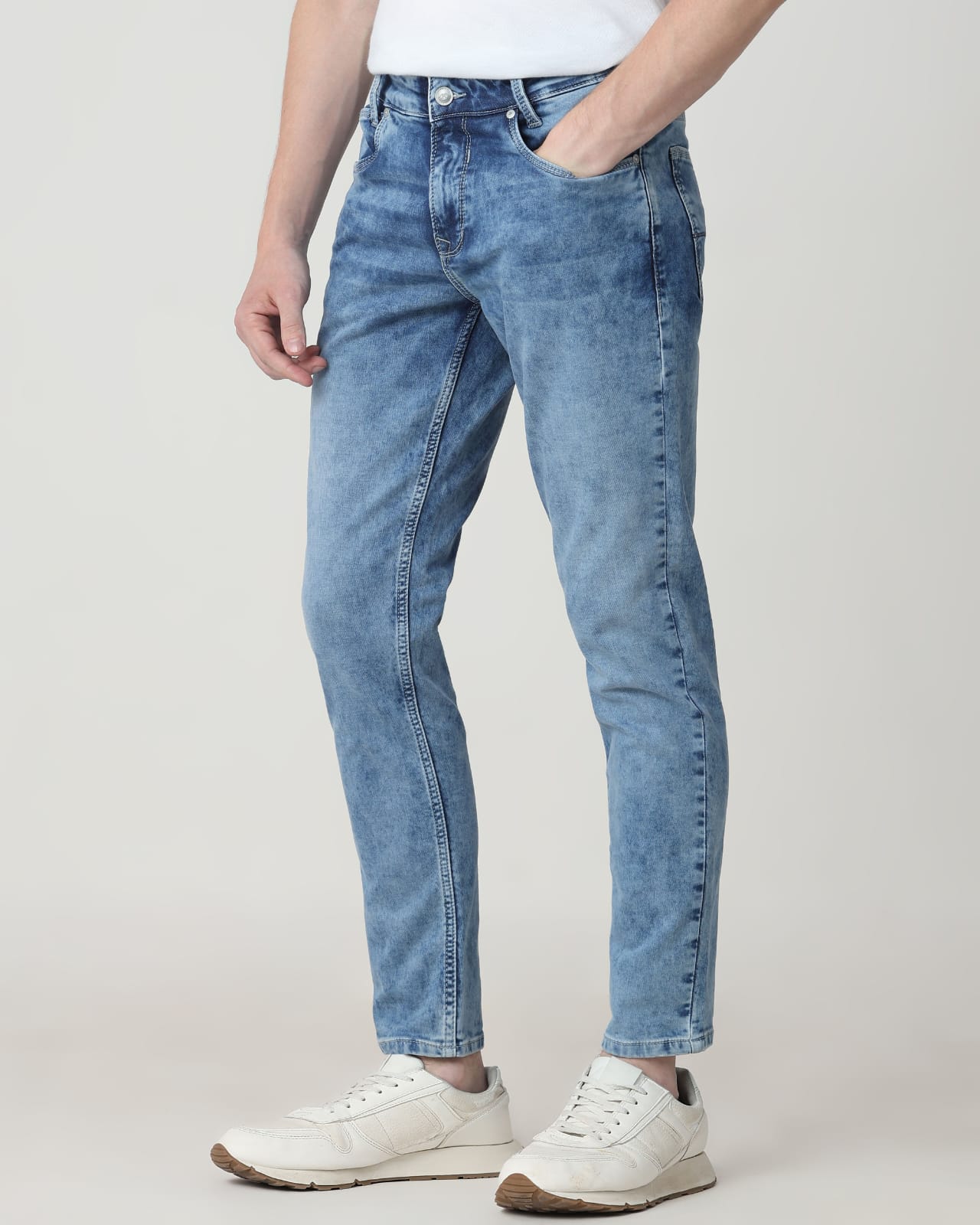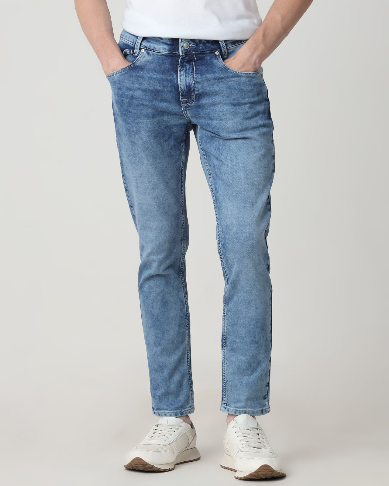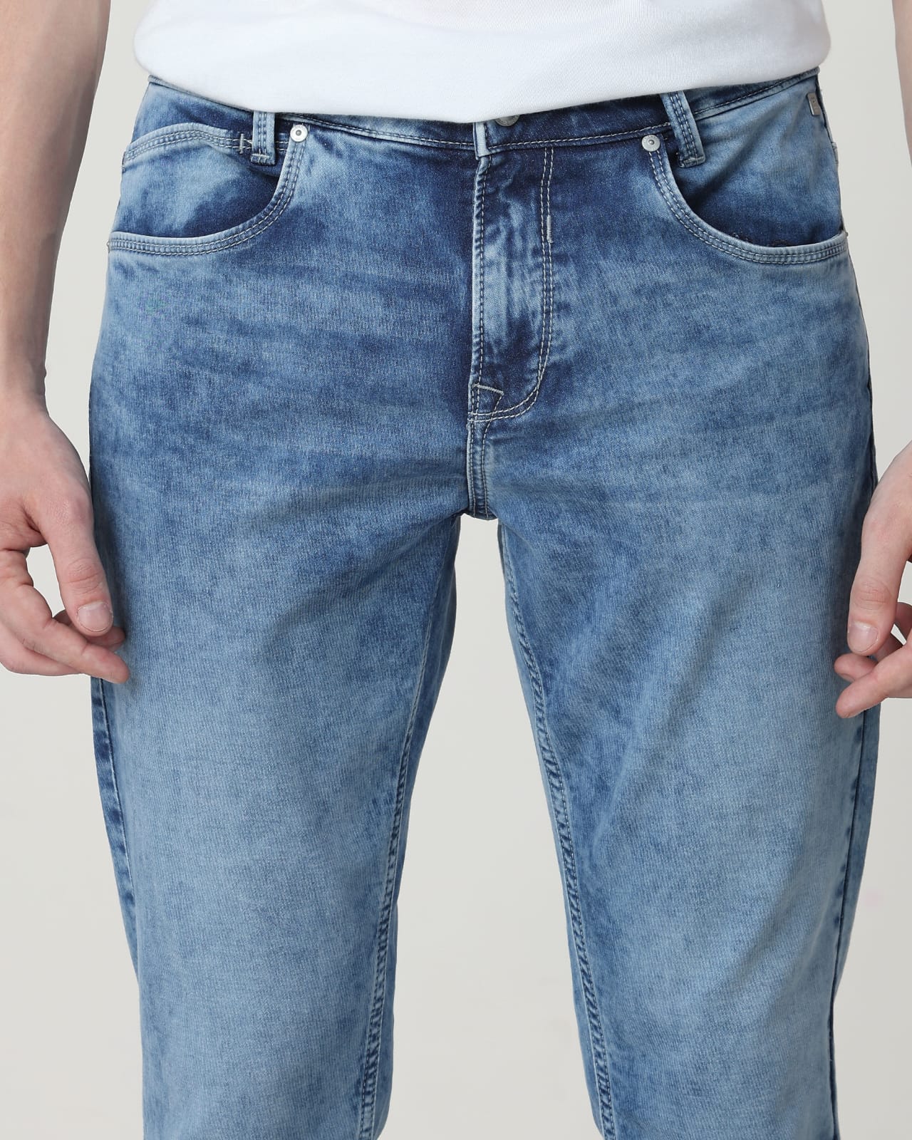 M Branded Men's Mid Blue Straight Fit Original Stretch Jeans (M-32)