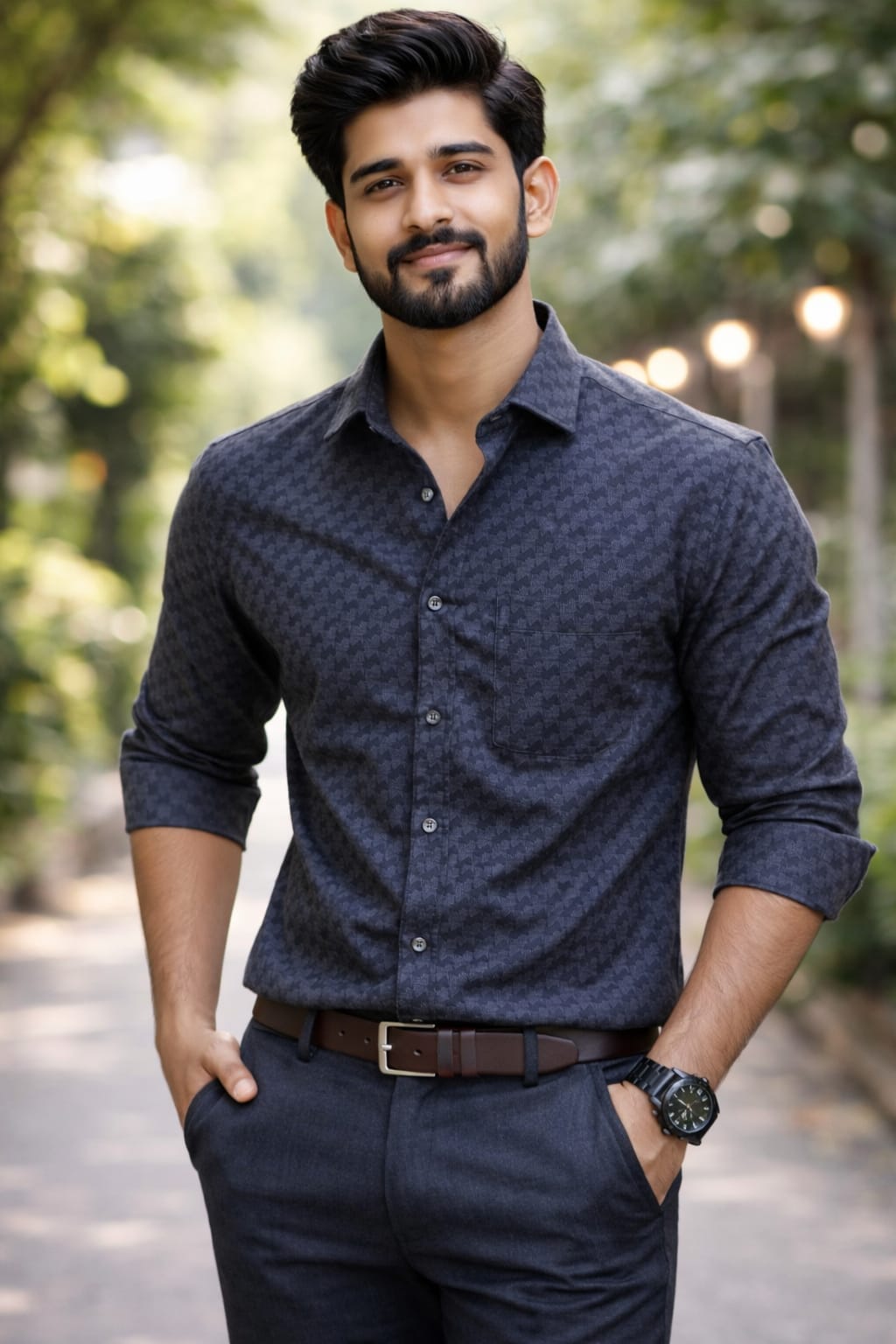 Men’s Checked Cotton Shirt (Black/Grey-L)