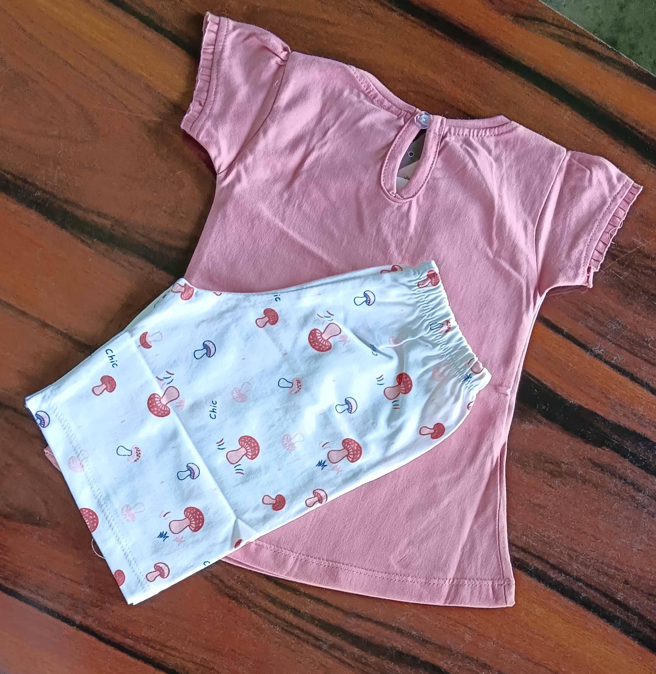 Kids Girls Printed T Shirt and Mushroom Printed Pant Set - KAJM0015