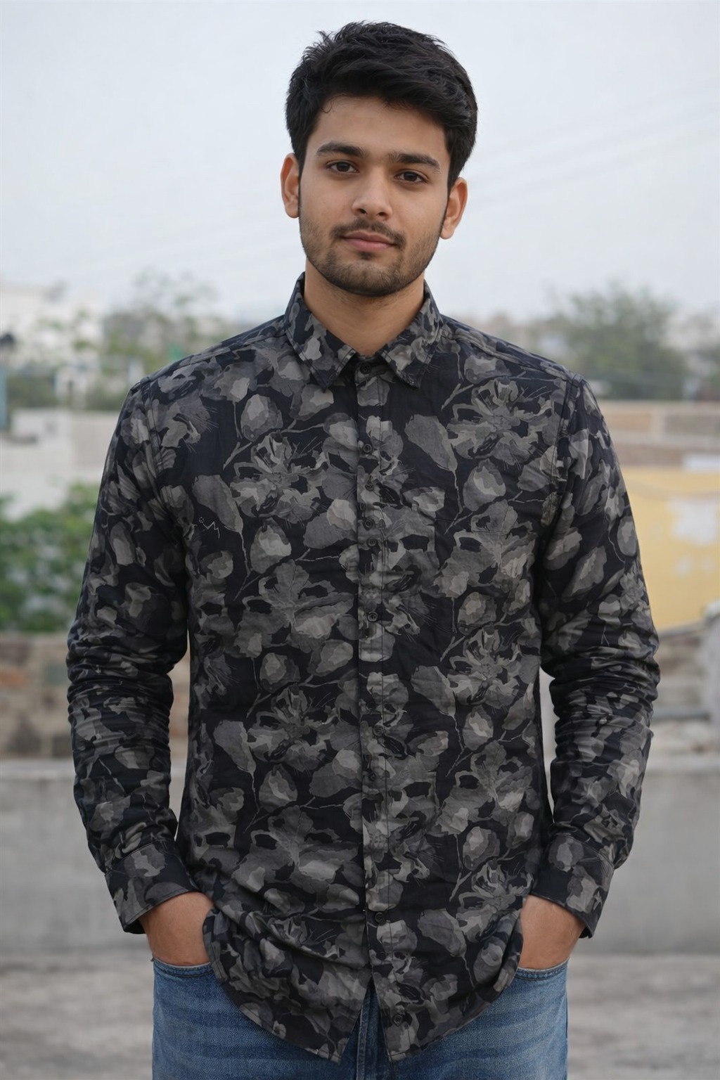 Silvar Men Slim Fit Printed Party Shirt (Black/White)